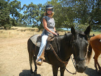 Sunday, we cannot take credit as Jessica planned our day! We slept in a bit and then headed into Sonoma Valley to do a horseback riding tour at the Kunde Family Estate. It was an hour tour which took you all over the property and to beautiful look outs of the valley. Our horses and guide were great. Immediately following the horseback riding we drove down the road to the rest of their property to do the Mountain Top Tour. They shuttled us to the highest point on the property where you could see the vineyards on the property, the neighboring mountains, and you could even see as far as the San Pablo Bay. It was a picture perfect day with beautiful sites and even better company. Once we came down from the top we picnicked at Kunde and then headed back to Napa. After cleaning up we did some more fine dining at Rotisserie and Wine which was founded by the famous chef, Tyler Florence. It is a recently built restaurant that sits right on the river and offers a small but delicious menu. After dinner, we played the game Farkle. Jessica had a strong come from behind victory over all of us in which we saw her sweet dance moves!! :)
